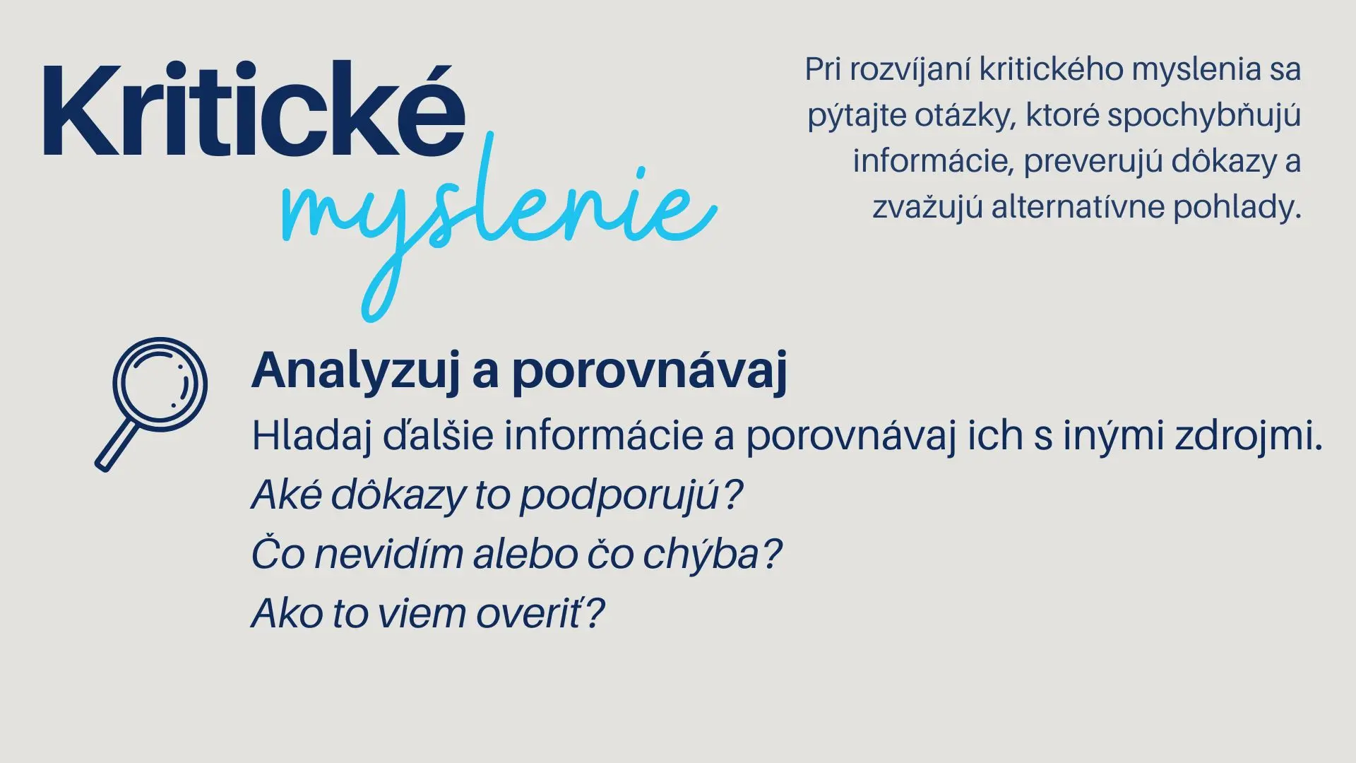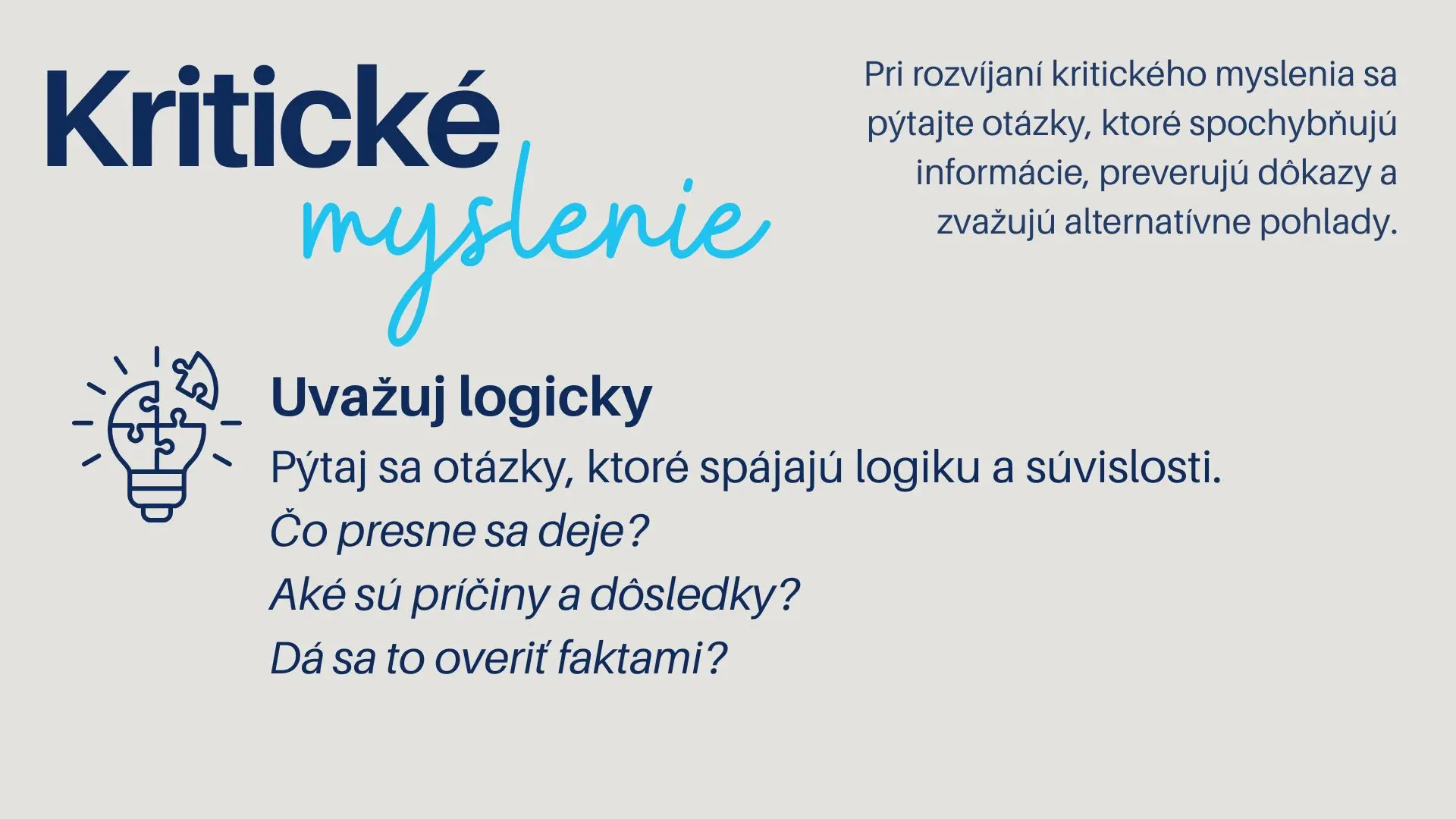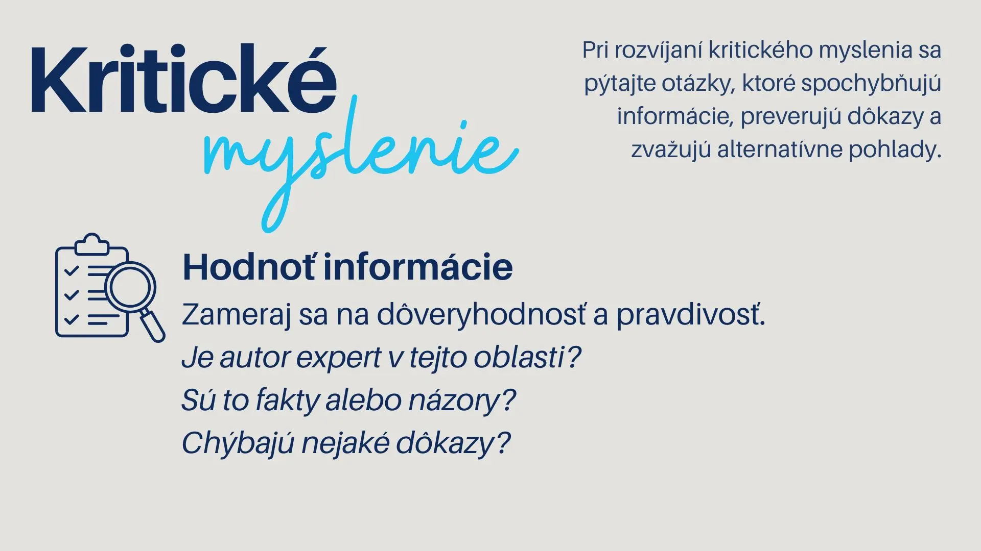 Kritické myslenie pri hľadaní a výbere zamestnania pomáha človeku realisticky zhodnotiť svoje schopnosti, limity a potreby podpory, namiesto toho, aby sa nechal viesť len emóciami alebo očakávaniami okolia.
